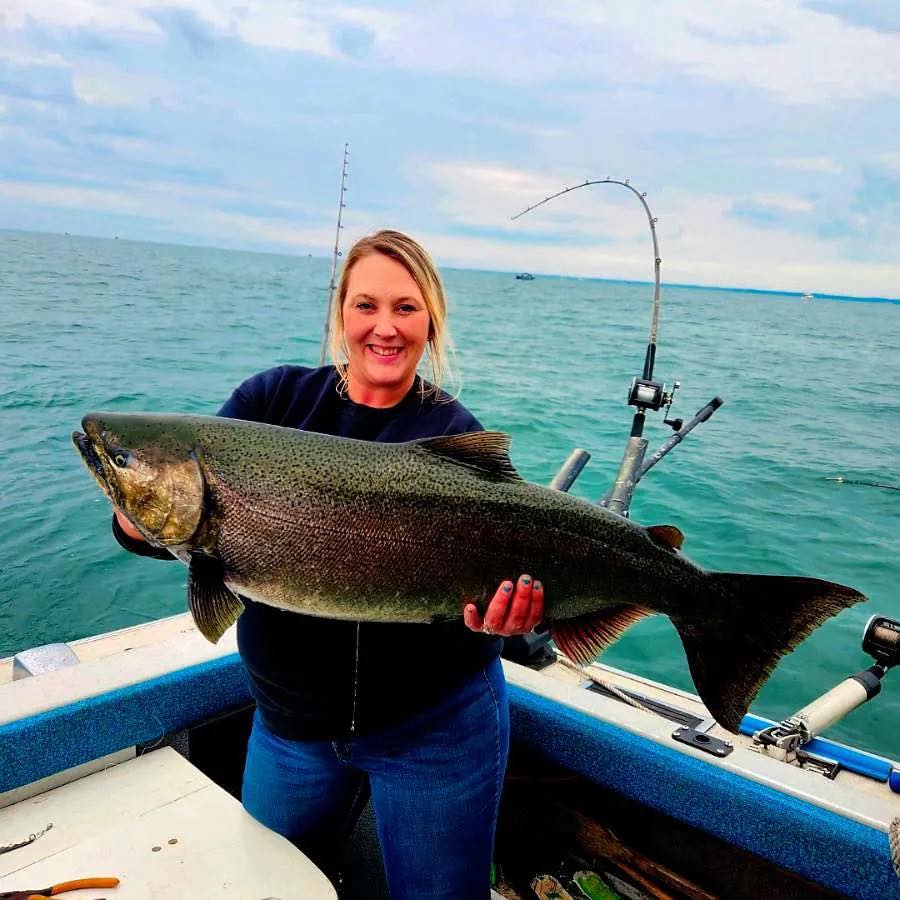 Chinook Salmon: The kings of the Great Lakes, these bruisers can tip the scales at over 30 pounds. They're known for their blistering runs and acrobatic leaps. Late summer into fall is prime time for these bad boys, when they start staging for their spawning run. There's nothing quite like the scream of a reel when a big king decides to head for deeper water.